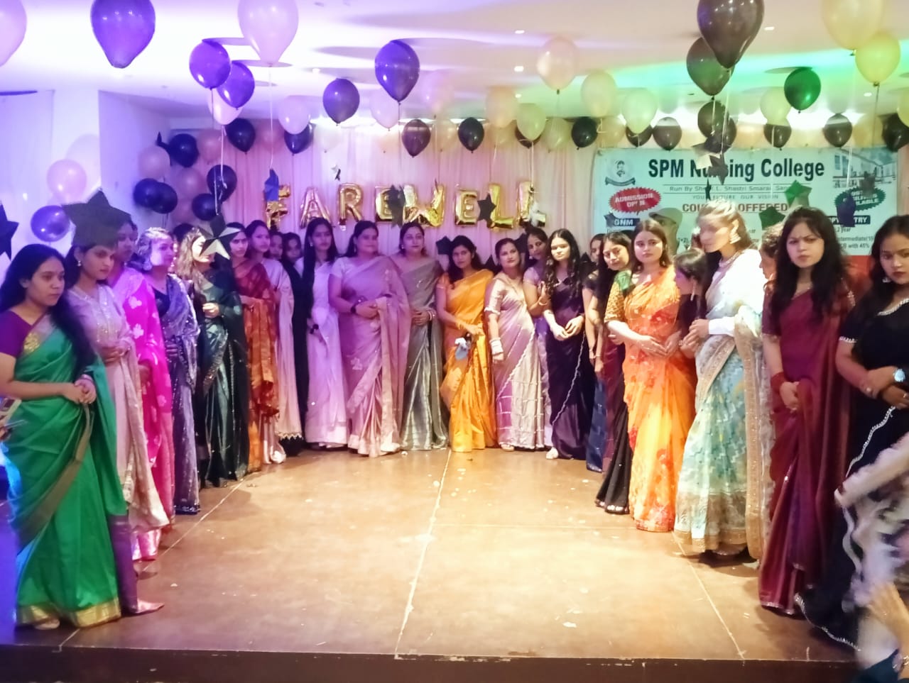 The Farewell Party at SPM Nursing College was a grand and heartwarming occasion, organized to honor and celebrate the outgoing batch of students. It was a day filled with emotions, gratitude, and joy, as juniors and faculty members came together to bid farewell to their seniors who are now ready to step into the professional world of nursing.