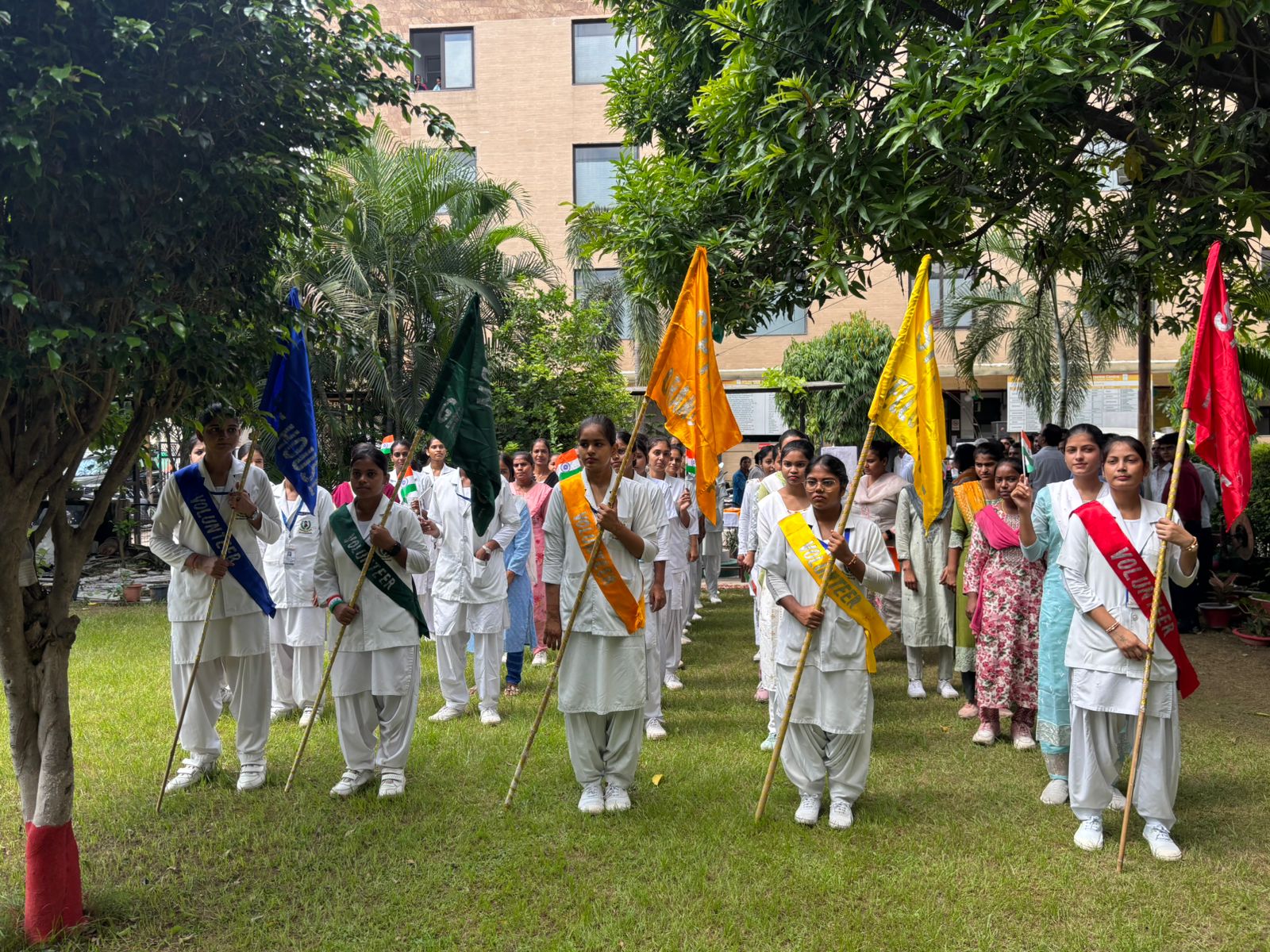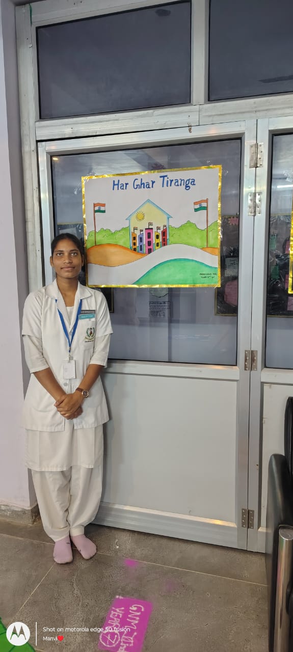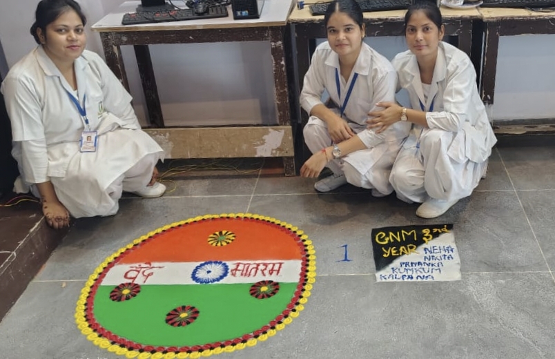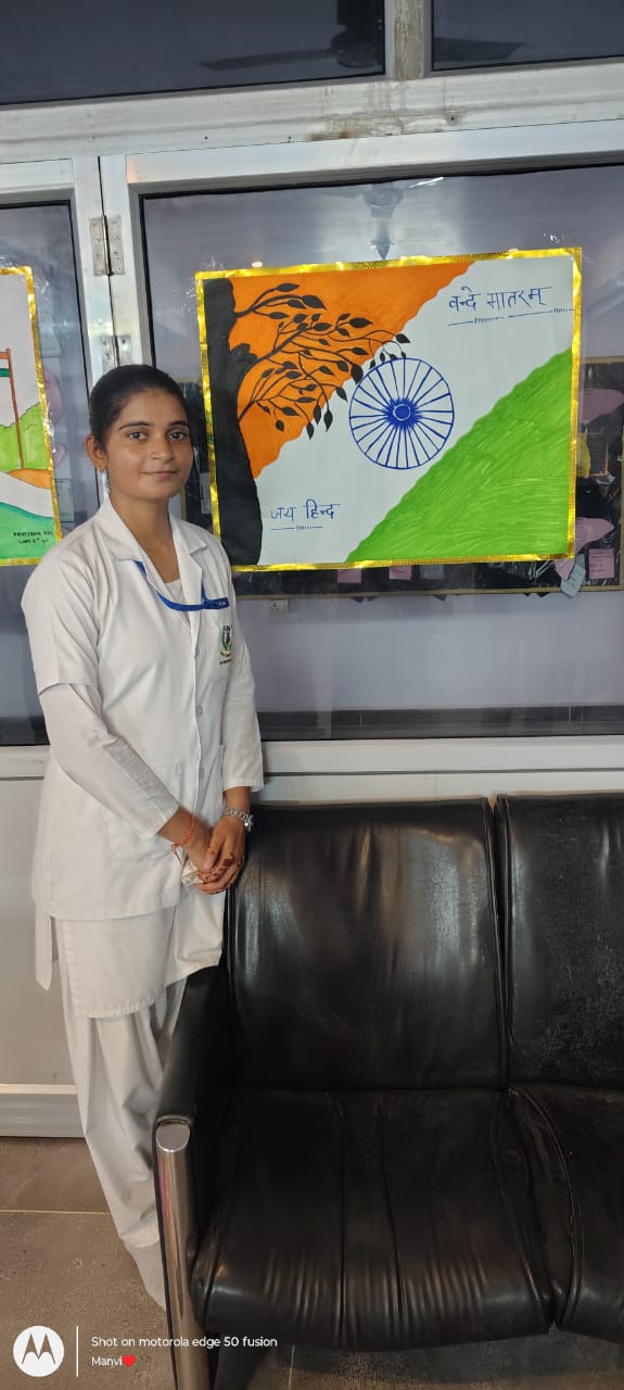 The Principal Mrs Sonam Gupta delivered an inspiring speech reminding everyone of the struggles of freedom fighters and the responsibility of youth in safeguarding the nation’s future. She emphasized the values of discipline, dedication, and compassion that every nursing student must imbibe, not only as healthcare providers but also as responsible citizens of the nation.