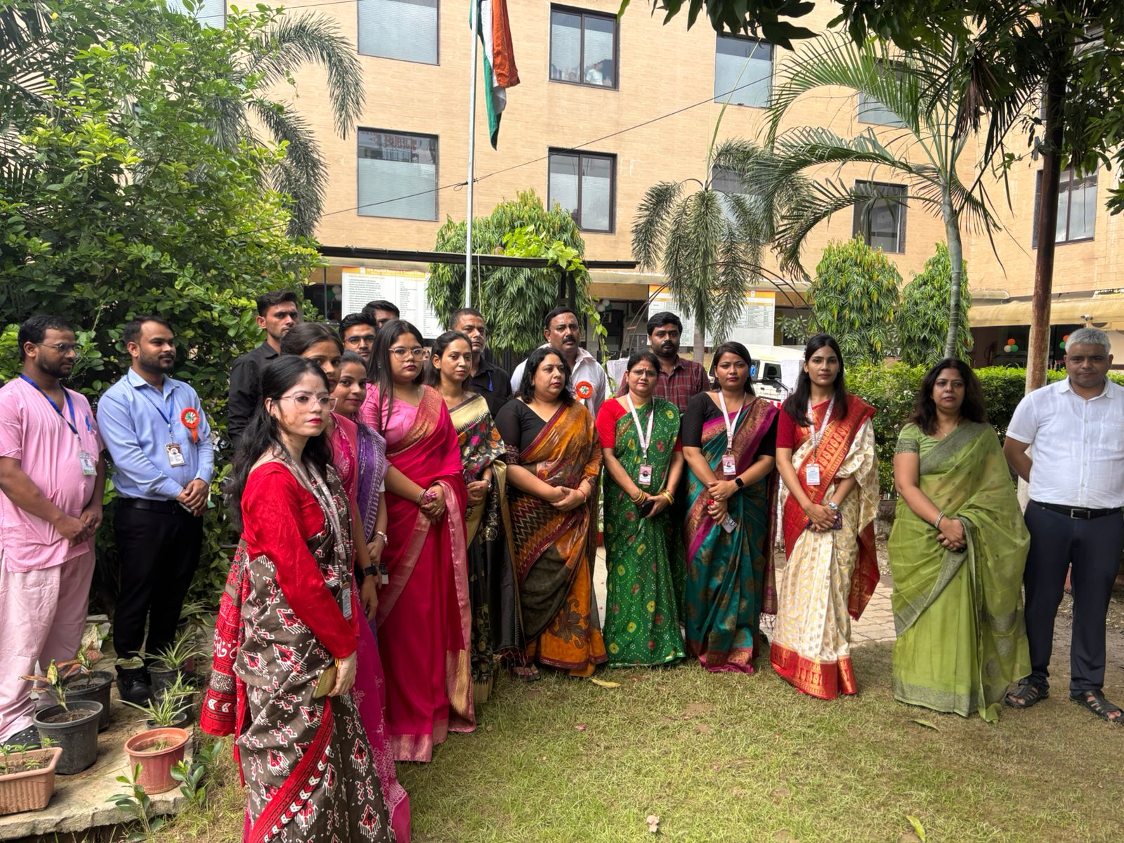 SPM Nursing College celebrated the 79th Independence Day of India with immense pride, patriotism, and enthusiasm. The event was organized within the college premises, where students, faculty members, and staff gathered to honor the sacrifices of our freedom fighters and to celebrate the spirit of independent India. The entire campus was adorned with the national flag, balloons, banners, and rangoli in tricolour, creating an atmosphere of festivity and national pride.